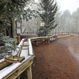 There are several visitor centers on Pikes Peak, some with a gift shop and restaurant. The one above is themed on gold mining. These centers are located at the 6-mile (9.7 km) and 12-mile (19 km) markers of the toll road, plus one at the summit itself.